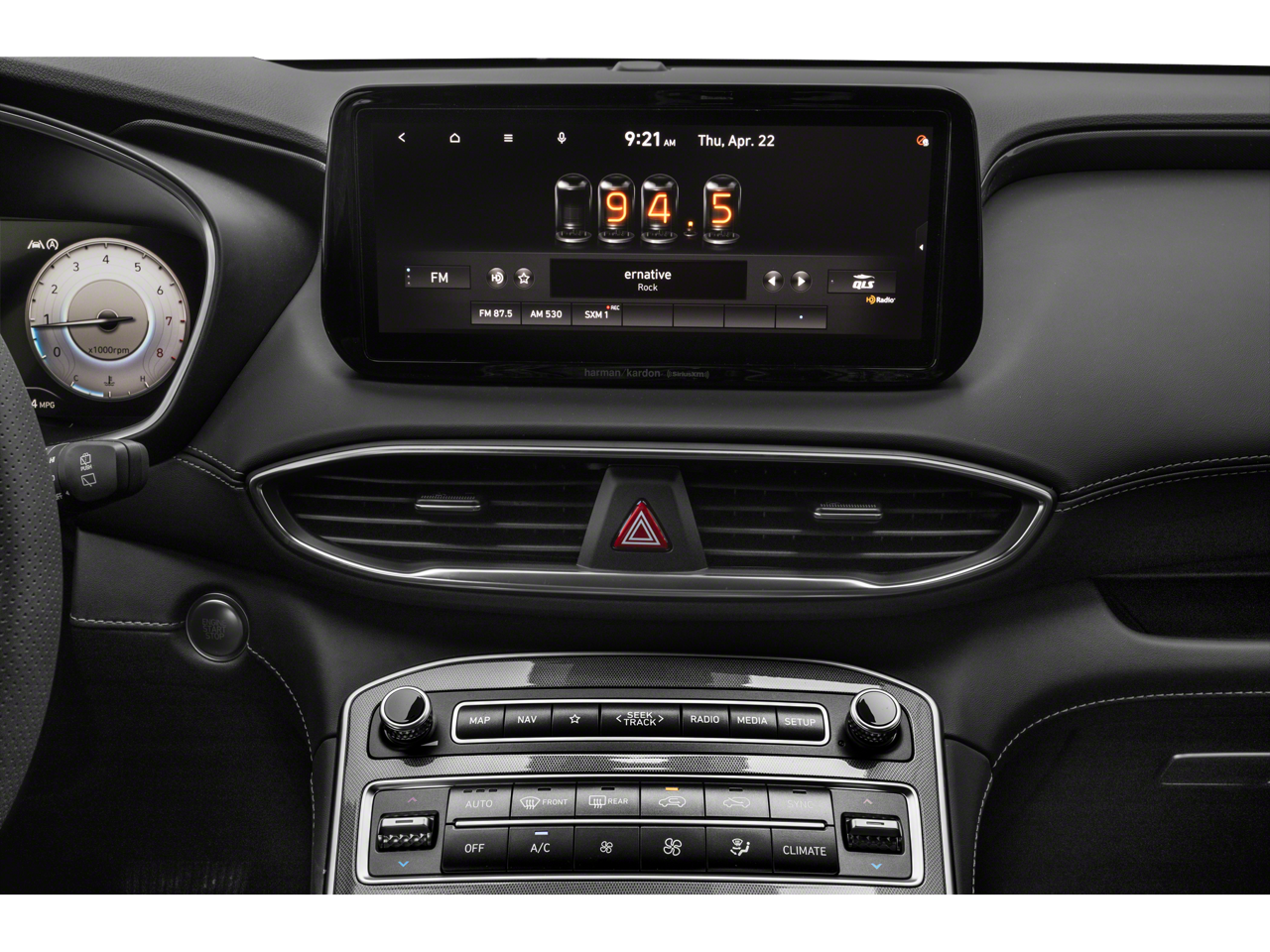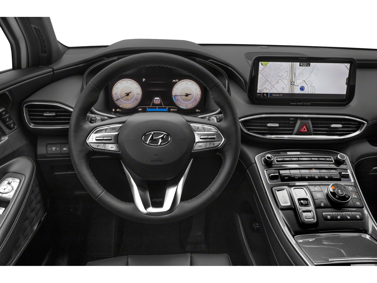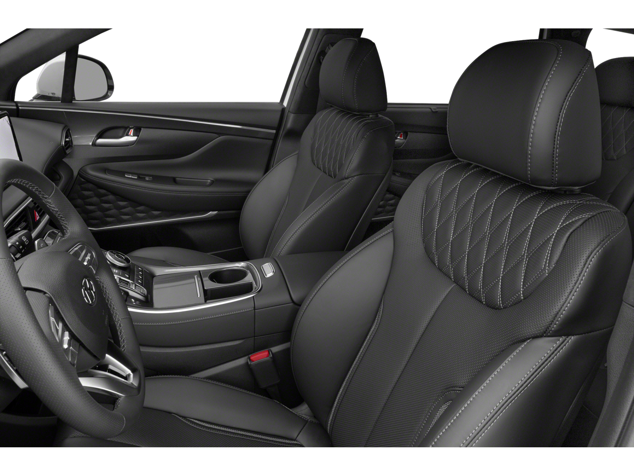 The Santa Fe Calligraphy's striking exterior is complemented by a wealth of advanced technology and comfort-enhancing amenities. Experience the convenience of hands-free connectivity with Apple CarPlay and Android Auto, as well as the confidence of a Heads-Up Display and a premium Harman Kardon audio system. Sink into the plush, quilted Nappa leather seats, which are both heated and ventilated for your ultimate comfort.