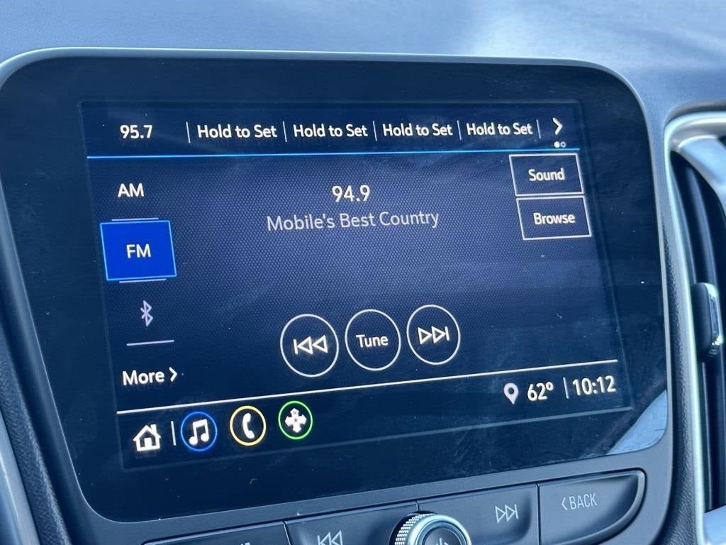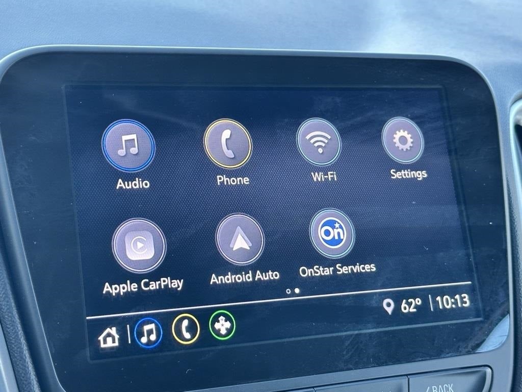 - Audio system, Chevrolet Infotainment 3 system, 8" diagonal color touchscreen, AM/FM stereo. Additional features for compatible phones include: Bluetooth® audio streaming for 2 active devices, voice command pass-through to phone, Apple CarPlay and Android Auto capable.