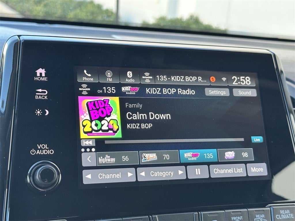 - Radio: 160-Watt AM/FM/HD/SiriusXM Audio System -inc: 7 speakers including subwoofer, 8" color touchscreen display, Bluetooth® HandsFreeLink, Bluetooth® streaming audio, MP3/auxiliary input jack, Radio Data System (RDS), Speed-Sensitive Volume Compensation (SVC), CabinControl remote compatibility, HondaLink, Apple CarPlay compatibility, Android Auto compatibility, SMS text message function, 3 2.5-amp USB charging ports, 2.5-amp USB smartphone/audio interface, illuminated steering wheel-mounted audio controls and black fin-type roof-mounted antenna, All SiriusXM services require a subscription, sold separately by SiriusXM after the trial period, If you decide to continue service, the plan you choose will automatically renew at the then-current rates, Fees and taxes apply, See the SiriusXM Customer Agreement & Privacy Policy at www.siriusxm.com for full terms and how to cancel, which includes calling 1-866-635-2349, Available in the 48 contiguous U.S, and D.C, Some services and features are subject to device capabilities and location restrictions, All fees, content and features are subject to change, SiriusXM, Pandora and all related logos are trademarks of Sirius XM Radio Inc, and its respective subsidiaries